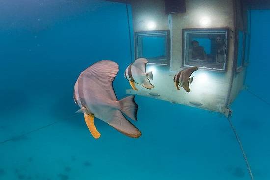 수심 4미터 깊이에 있는 1층 해저 객실로 내려가면 인도양 전체가 나만의 아쿠아리움이 된다. 객실에 누워 잠들 때까지 그리고 잠에서 깬 후에도 각양각색 열대어떼들이 침대 주변을 맴도는 모습을 볼 수 있다. 밤에는 객실에서 새어나오는 불빛을 따라 몰려든 오징어와 열대어, 작은 미생물로 더없이 멋진 바닷속 야경이 펼쳐진다.