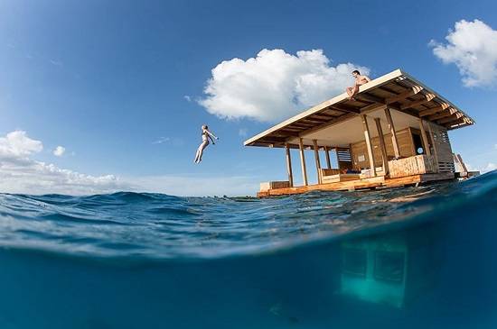 아프리카 탄자니아의 펨바 섬에 위치한 만타(Manta) 리조트의 수중 호텔은 사진에서처럼 인도양 한가운데 떠 있다. 수상택시를 타고 들어가야 하는 이곳은 크기는 작지만 3층으로 알차게 구성돼 있다.