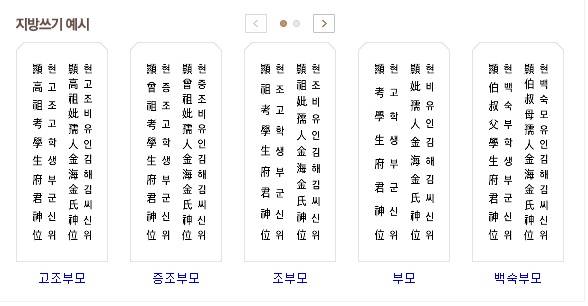 - 지방 쓰는 법, 명절 차례상에 올리는 지방 적는 순서