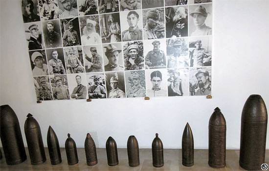 첫 전투에서 이탈리아는 오스트리아군을 물리쳤다. 정예 산악부대 알피니(Alpini)는 크른(KRN·2244m)산을 점령했다. 접경지 카포레토(코바리드)를 차지했다. 박물관에 양군 사진이 함께 전시돼 있다. 추모 십자석도 적과 동지를 나누지 않는다. 요제 셰르베치(Jo<017E>e <0160>erbec) 관장은 "군복 견장 5각별은 이탈리아(프랑스제 철모), 오스트리아는 6각별(베른도르프 철모)"이라고 구별해 준다. 무기, 포탄, 철모, 사진, 지도, 군복들이 짜임새 있게 진열돼 있다. 박물관은 아담한 3층 건물.