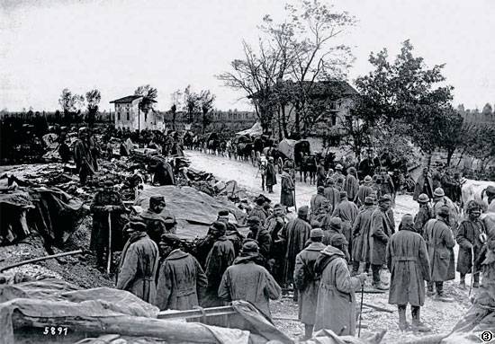 ③ 카포레토 전투에서 이탈리아군은 집단 후퇴했다. 전쟁 의지를 상실한 군대의 붕괴 모습.