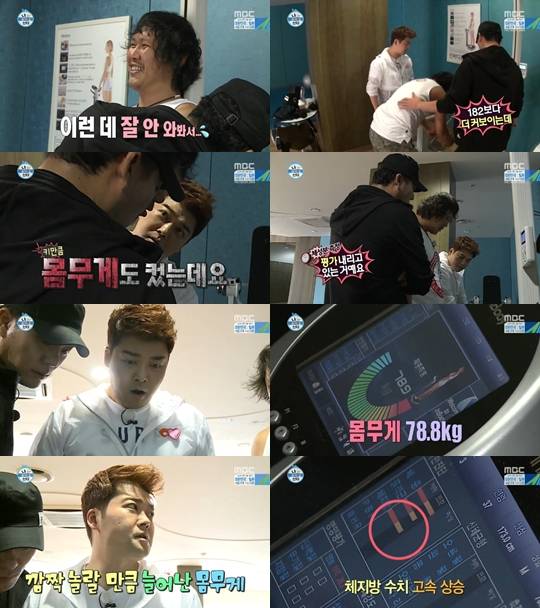 본격적으로 운동하기 전 육중완과 전현무는 키와 몸무게, 체지방 수치를 쟀다. 육중완은 키 182cm, 몸무게 101.5kg였다. 이에 이태곤은 "182보다 더 커 보이신다"며 놀랐다.