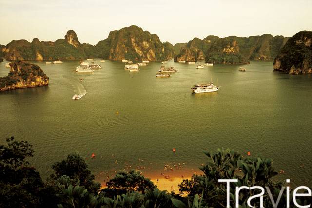 Vietnam Ha Long Bay 내가 하롱베이를 사랑하게 된 것은 하롱베이가 보여 준 어떤 풍경 때문이었다. 바다와 섬, 새벽의 안개와 밤의 별, 쓰다듬 듯 불어와 주는 바람들. 그리고 그 모든 것들이 나를 스쳐가며 만들어 준 풍경. 그것들로 인해 이제 나는 하롱베이를 사랑하게 된 것이다.티톱섬 전망대를 오르며 바라본 하롱베이 전경. 잔잔한 바다와 유람선, 수많은 섬들이 한 눈에 들어온다. 월남전 당시 러시아 비행사의 휴양지로 이용되며 조성되었다고 하는 인공 해변의 풍경도 이채롭다