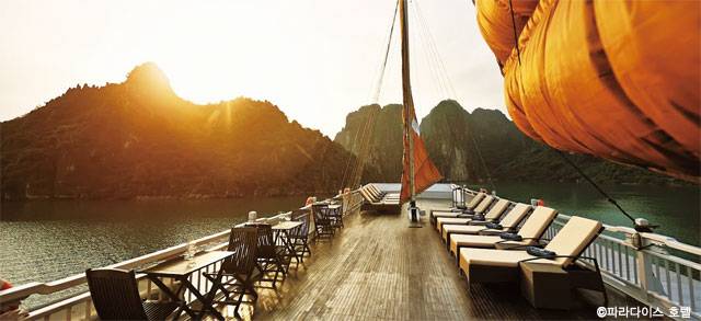 Hotel하롱베이에서 즐기는 풍요로움 파라다이스 스위트 호텔지금까지 하롱베이 여행은 은퇴 후 효도 관광을 떠올리게 했다. 하지만 막상 하롱베이에 가보면 휴양을 즐기러 온 젊은 유럽 여행자를 많이 만나 볼 수 있다. 앞으로 우리에게도 하롱베이는 유럽인들에게처럼 근사하고 럭셔리한 여행지로 다가올 수 있지 않을까? 그 출발점에 호텔 파라다이스가 있다.