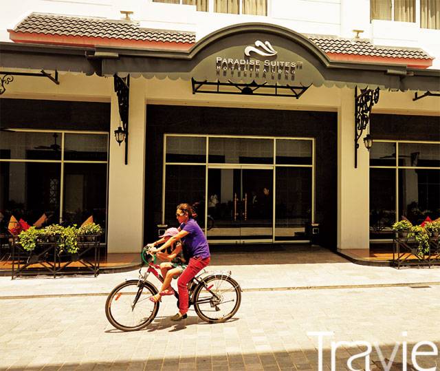 하롱베이의 한낮은 여유로움으로 가득하다. 파라다이스 호텔앞 풍경. 모녀가 자전거를 타고 태양 아래를 천천히 지나고 있다