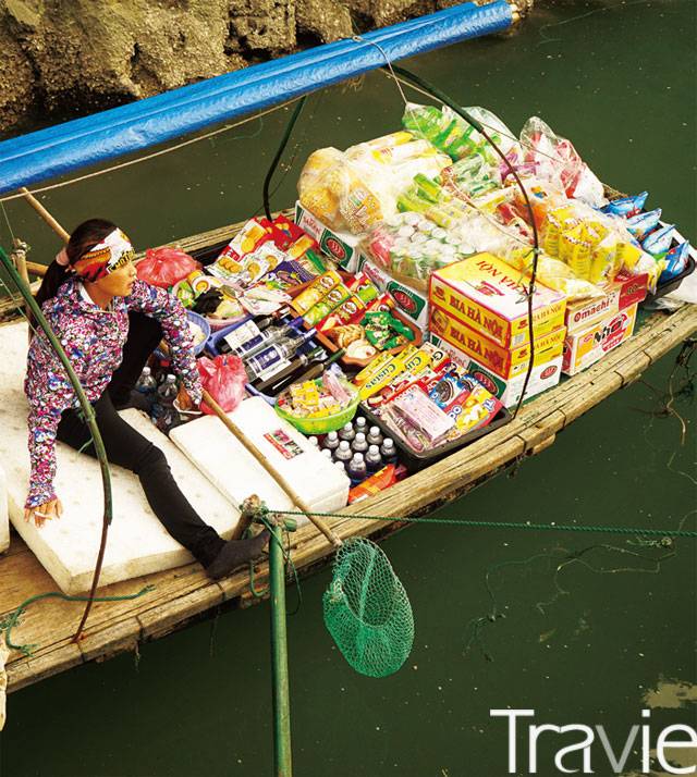 크루즈가 멈추면 바다 위의 슈퍼마켓들이 다가와 여행객들을 유혹한다. 크지 않은 배 위에 공산품에서 과일까지 모든 것이 다 있다
