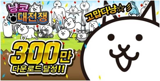 ㈜포노스 (대표: 츠지코 요리카츠)는 자사가 개발, 서비스하는 스마트폰 게임 '냥코 대전쟁'이 한국 정식 서비스 시작 후 약 3개월 만인 9월 23일 기준, 300만 다운로드를 돌파했다고 24일 밝혔다.