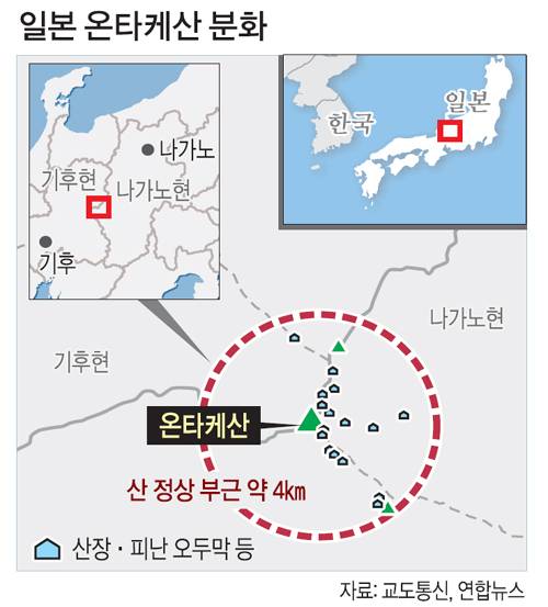 일본이 놀라는 것은 사전에 분화 조짐이 관측되지 않았기 때문이다. 일본 기상청은 지난달 중순 화산성 지진이 늘고 있었지만 다른 관측 데이터에 변화가 없어 입산을 규제하지 않았다고 설명했다. 아사히신문은 불과 미동 관측 12분 만에 분화했다고 보도했다.