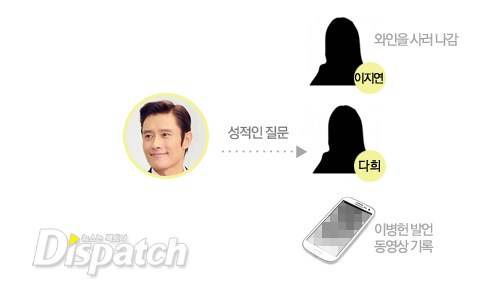 이병헌은 유흥업계 종사자 A씨를 통해 이지연을 소개받았다. A씨가 이병헌과 동행했고, 이지연이 다희를 데려왔다. 그들은 대부분 4명이 함께 모였다.