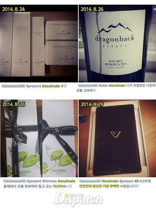 8월 24일, 화장품 세트를 올렸다. 태그는 '#present #soulmate #♡'다.