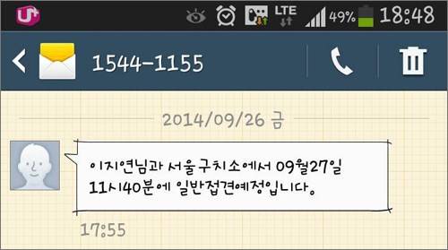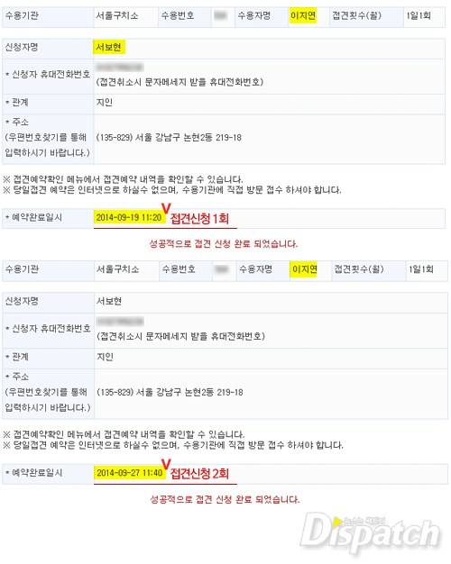 "이지연님과 서울구치소에서 09월27일 11시 40분에 일반접견예정입니다."