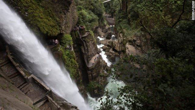 팔리온 델 디아블로 폭포(에콰도르) 에콰도르에 있는 '팔리온 델 디아블로 폭포'는 '악마의 냄비'라는 의미를 지니고 있다. 여러 폭포 물줄기가 냄비에 든 것처럼 둥글게 모인다고 하여 붙여진 이름이다. 이 계단에는 부드럽고 큰 자갈들이 깔려 있어 올라가다가 아래를 보았을 때 마치 돌 미끄럼틀 같은 착시 현상을 일으킨다. 금속의 난간에 폭포의 물방울이 튀어 미끄럽기까지 하다.