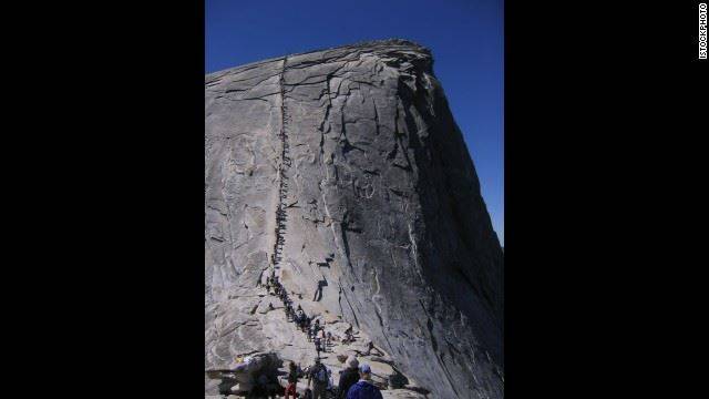 하프 돔(미국 캘리포니아주) 미국 캘리포니아주의 유명 국립공원인 '요세미티 국립공원'의 꼭대기에 '하프 돔'이 있다. 공원의 상징이라 할 이 곳에 도착하기 위해서는 절벽에 매달린 줄로 된 사다리를 무려 11㎞나 올라야 한다. 허가를 받아야 오를 수 있을 정도로 매우 위험하다. 미국 현충일(5월 네 번째 일요일)과 10월 중순 사이에 신발과 날씨를 감안해 허가를 받을 수 있다.