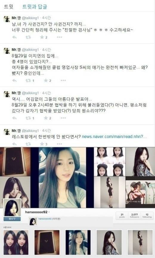 | ▲이병헌 이지연 협박 사건 모델 이지연 글램 다희 이병헌에 집 사달라 요구 강병규 트위터 글(사진=SNS) |