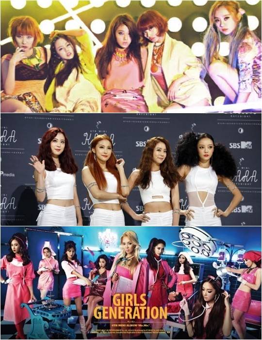 원더걸스, 카라, 소녀시대(위쪽부터)