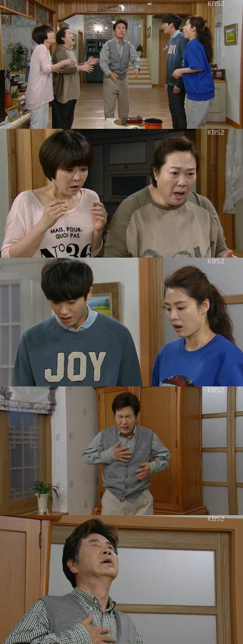 그 시각 차순봉은 방안에서 답답한 가슴을 쓸어내리며 냉수를 들이켜는 쓸쓸한 가장의 모습으로 안타까움을 자아냈다. (사진=KBS 2TV 주말드라마 '가족끼리 왜이래' 14회 캡처)