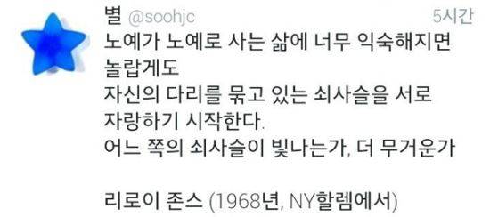 '별'이라는 계정의 트위터에 오른 글귀입니다.