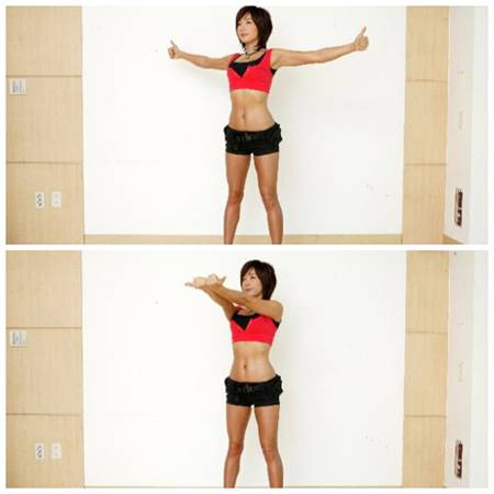 ◇실내에서 할 수 있는 가슴 운동1. 다리를 어깨너비로 벌리고 양팔을 옆으로 편다.2. 엄지손가락을 위로 올린 상태로 가슴 근육에 힘을 준다.3. 입으로 호흡을 내쉬면서 4초 정도의 속도로 팔을 모아준다. 이때 엄지손가락이 밖으로 향한 상태로 모아줘야 한다.4. 팔을 모을 때 가슴 근육에 힘이 들어가는지 확인하면서, 20회 반복 후 30초 쉬는 것을 1세트로 하루 4~5세트 진행하면 된다.