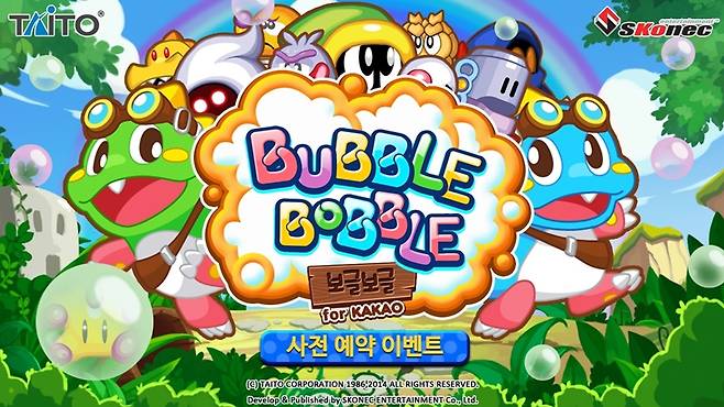 'Bubble Bobble(이하 보글보글)'은 전세계 10억 게이머로부터 사랑을 받아 온 타이토의 액션 아케이드 게임으로, 이번에 선보여지는 '보글보글 for Kakao'는 스코넥엔터테인먼트가 직접 개발해 새로운 에피소드를 추가하고, 카카오 친구들과 함께할 수 있는 소셜 요소 등을 강화해 서비스를 진행할 예정이다.