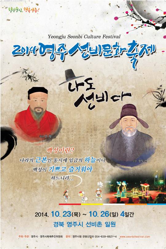 우리의 선비문화를 소재로 한 '2014선비문화축제'가 '나도 선비다!'를 주제로 오는 23일부터 26일까지 4일간 경북 영주시의 대표 관광지인 선비촌 일원에서 개최된다.