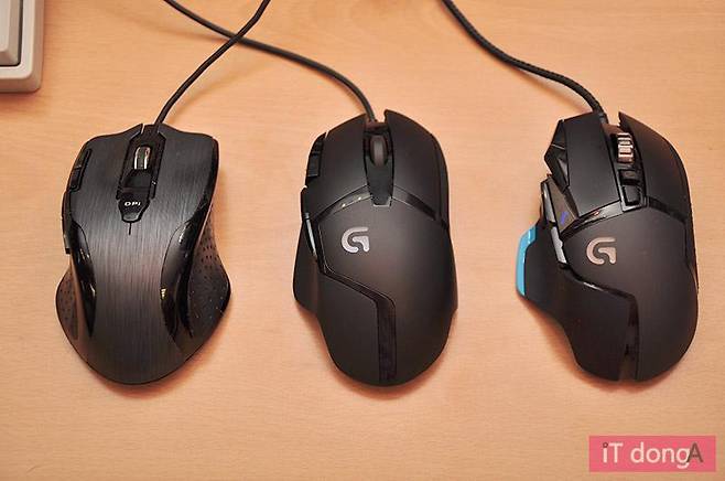 <왼쪽부터 테소로 슈라이크, 로지텍 G402, 로지텍 G502>