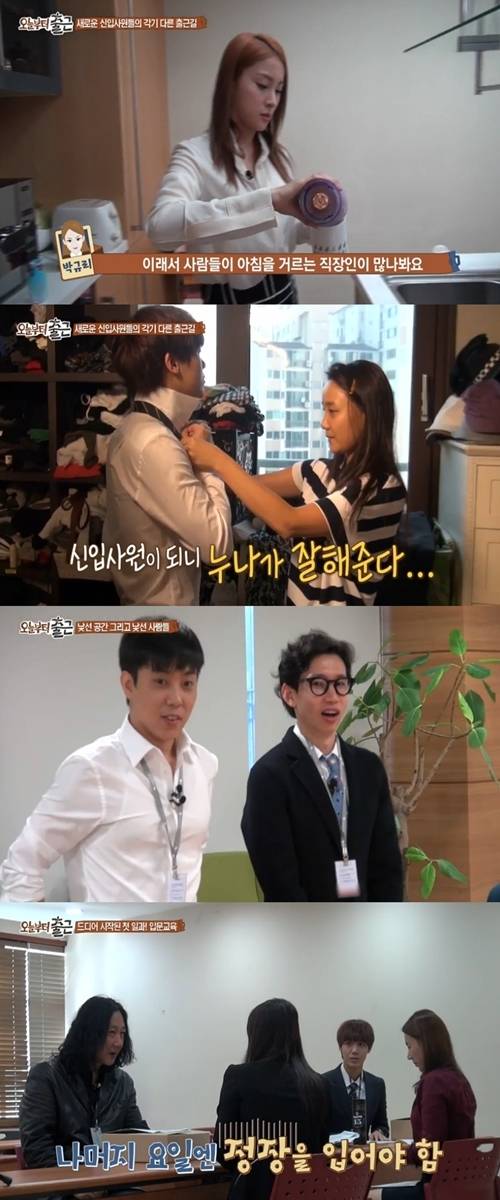 이날 '오늘부터 출근' 2기 멤버들은 아침 출근 시간부터 멘붕이였다. 박규리는 "직장인들은 아침을 꼬박 챙겨 먹을까?"라고 하면서 아침 먹는 것을 버거워했고, 미르 역시 누나가 챙겨주는 정장을 입고, 엄마가 차려주는 아침을 먹으며 새벽 기상을 힘들어 했다.