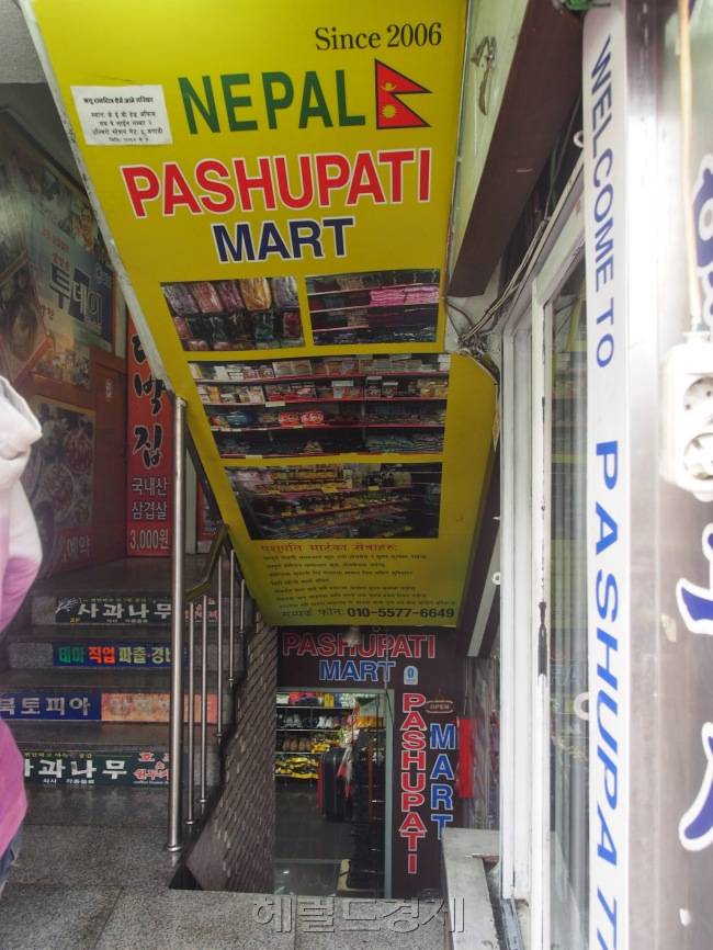 이곳에 처음 문 을 연 인도-네팔 음식점은 '에베레스트'다. 등산 장비 무역업 하던 구룽 헐커 만(39)씨가 이곳에 음식점을 연 것은 네팔을 다녀온 경험이 있는 한국인들을 위해서다. 그러나 '에베레스트'의 향신료 냄새 그윽한 네팔 음식을 더욱 반긴 것은 한국에 사는 네팔인들이었다. 그들은 일요일이면 이곳에서 식사를 하고 담소를 나누며 평일 고된 일로 쌓인 스트레스를 푼다.