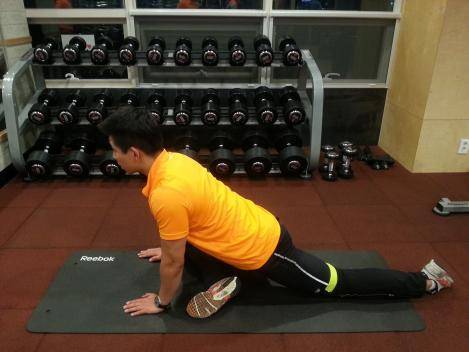 위의 사진과 같은 자세로 스트레칭을 하게 되면 이상근의 신장을 통해 좌골신경의 압박을 줄일 수 있다. 또 엉덩이와 다리저림증상이 많이 나아진다.(도움말=터닝포인트짐 김정수 매니저/모델=터닝포인트짐 루이 트레이너)