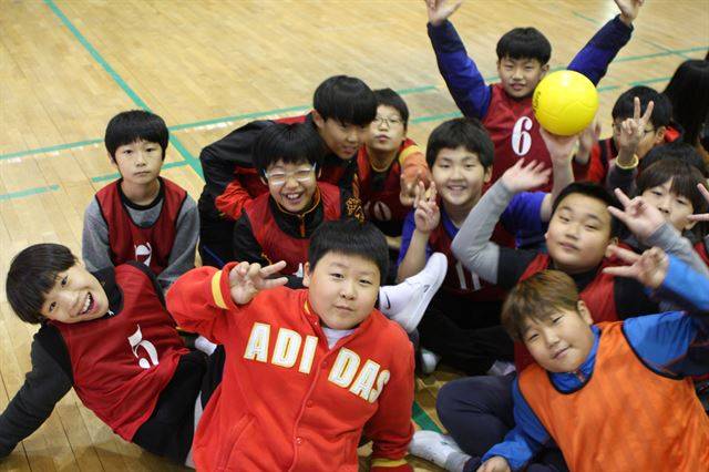서울 창림초등학교 5학년 학생들이 28일 오후 피구교실을 열어 즐거운 한때를 보내고 있다. 국민생활체육회 제공