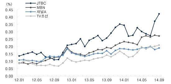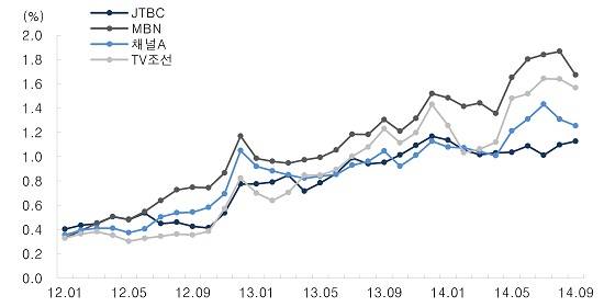 | 종편 4사 시청률 추이. JTBC가 꼴찌다. | ||