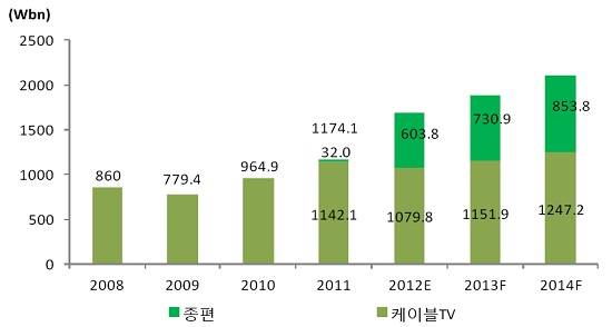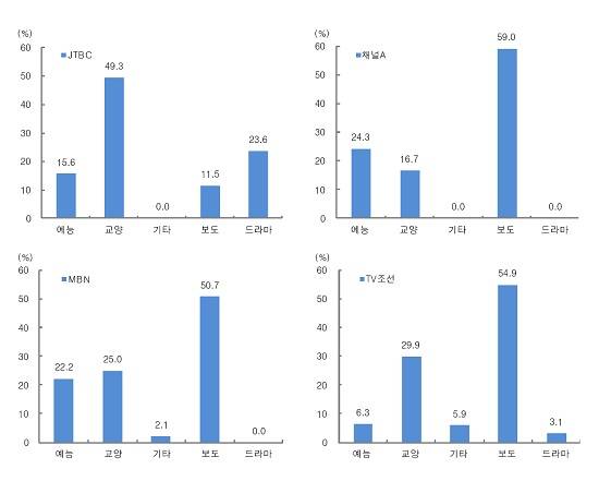 | 제대로 된 종합편성채널은 JTBC 밖에 없다는 이야기도 나온다. 다른 종편이 비용이 적게 들고 시청률을 올리기 좋은 뉴스에 집중하는 반면 JTBC는 장기적으로 고정 시청층을 늘릴 수 있는 드라마와 교양에 꾸준히 투자하고 있다. 그래프는 ⓒ대신증권 자료. | ||