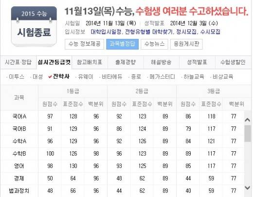 지난 13일 2015학년도 수학능력시험이 시행된 가운데 이날 수능 등급컷과 수능 답이 공개됐다.