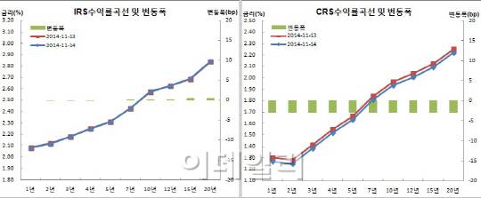[이데일리 김남현 기자] CRS금리가 하락했다. 달러-원이 1100원대로 올라서며 1년2개월만에 최고치를 경신한 영향에 중공업체 물량과 에셋스왑이 나왔다. 스왑베이시스도 3개월만에 와이든 됐다.