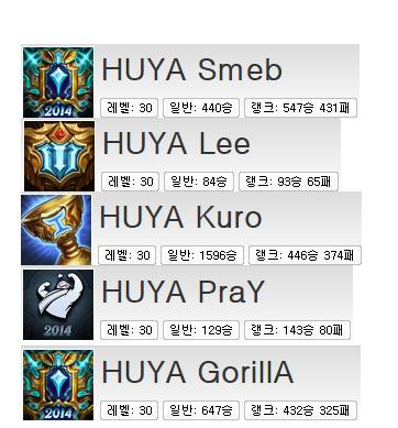 GE 엔터테인먼트가 밝힌 HUYA 타이거즈 선수 명단.인기 아프리카 BJ들이 소속된 기획사인 GE 엔터테인먼트가 LOL팀을 창단했다고 밝혔다.