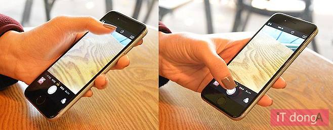 그런데 아이폰6는 이게 좀 불편해졌습니다. 화면 윗부분을 눌러 초점을 맞추면 아이폰6가 '휘청'합니다. 그리고 아래 셔터버튼을 누르려고 손가락이 내려오면 또 제품이 흔들려요. 안정적으로 손에 잡히는 느낌이 많이 떨어졌습니다. 아무래도 얇고 커졌기 때문이겠죠.