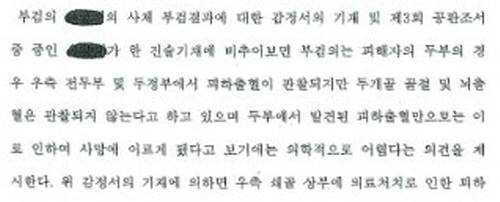 국과수 부검의가 작성한 감정서와 법정증언, 신빙성 의심