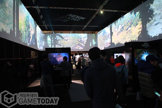 넥슨은 360도로 회전하는 영상관을 구현한 '미디어 갤러리'를 선보였다. 한땀한땀 수놓고 있는 내년 신작들의 생생한 영상이 쏟아져 유저들은 부스에 서 있는 것만으로 15종의 넥슨표 작품을 관람할 수 있어 미술관을 연상시킨다. 뿐만 아니라 넥슨 내 '슈퍼스테이지'에도 문전성시를 이뤘다. 개발자 발표와 관람객 이벤트가 끊임없이 이어졌기 때문.무대에서는 '메이플스토리2' '영웅의 군단: 레이드' '광개토태왕' '공각기동대 온라인' '클로저스' 등 신작 게임 디렉터가 직접 게임 소개에 나섰고 서든어택 프로게이머들가 '서든어택2'로 치열한 전투를 선보이기도 했다. 더불어 '야생의 땅:듀랑고' 속 공룡과의 참참참 게임 등 이벤트들도 지속적으로 진행돼 유저들의 참여도를 적극 높였다.