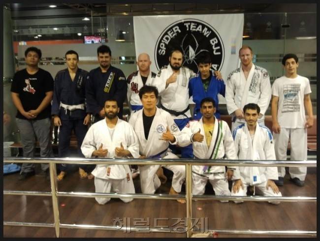 ▲사우디에 일을 하러 온 해외 주재원들이 만든 주짓수 팀인 스파이더라는 팀이 있었다. 수소문 끝에 팀에 합류하고 수련하기 시작했다. 사우디 발령은 나로 하여금 주짓수와 더 가까워지게 되는 계기가 되었다. 당시 사우디에 발령받았을 때 가족이 함께 힘든 조건이어서 혼자서 생활하게 됐다. 해외에서 혼자 발령 온 사람이 생활하기에 사우디는 즐길 것이 거의 없다. 술이 법으로 금지되어 있고, 영화관도 없다. 공공장소에선 음악도 틀면 안 된다. 이러한 상황에서 취미로 할 수 있는 것은 주짓수뿐이었다. 이러한 조건으로 인해 주짓수와 더욱 가까워졌다.