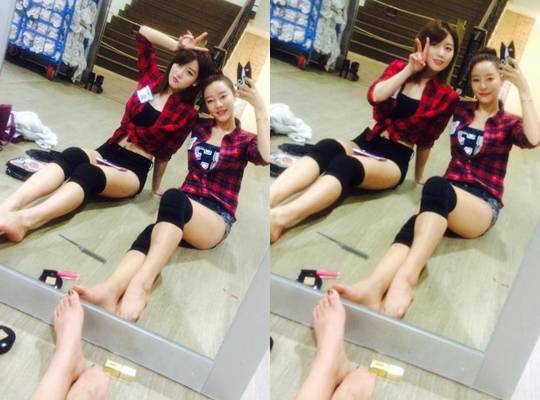 공개된 사진속 우리와 승아는 각선미를 드러낸 핫팬츠를 맞춰 입고 거울을 이용해 인증 사진을 남기고 있다. 미모는 물론 완벽한 몸매가 눈길을 사로잡았다.