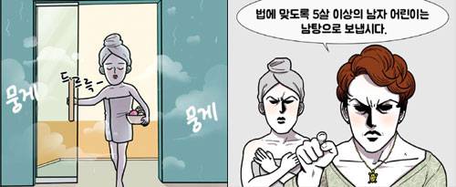 일상에서 소소한 재미를 길어올리는 생활툰('생활'과 '웹툰'의 합성어)이 웹툰의 인기 장르로 자리매김한 지 오래다. 연애('윌유메리미'), 회사생활('가우스전자'), 싱글 라이프('아랫집 시누이') 등 웬만한 소재는 다 나왔다. 이런 과포화 상태에서 기발한 소재로 틈새시장을 노린 생활툰이 주목을 받고 있다. 금남(禁男)의 공간인 여탕이 주무대인 '여탕보고서'다. 목욕탕이란 특수한 공간을 다룸에도 불구하고 남녀노소의 공감을 얻는다. 지난달 초 네이버에 정식 연재된 후 요일별 웹툰 2위로 올라섰고, 회당 댓글이 8000개 넘게 달린다. 목욕탕으로 '대동단결'을 이끈 마력의 작가가 누구인지 궁금했다.