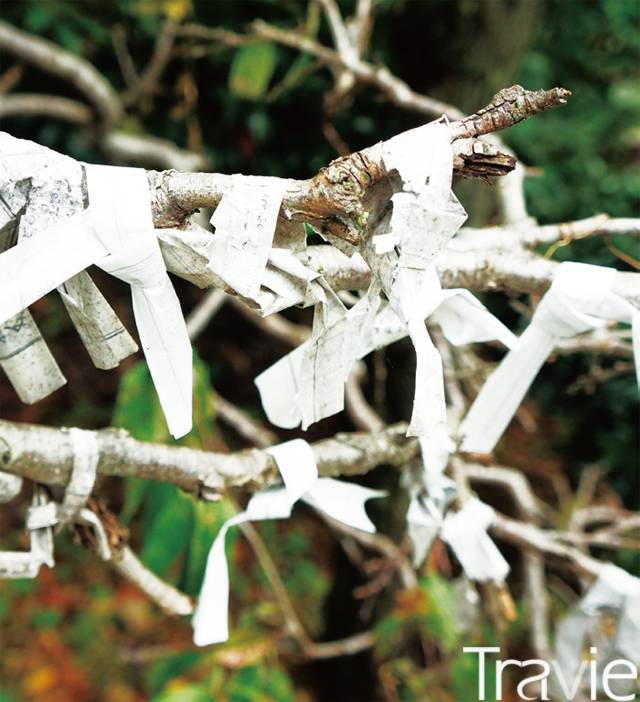 신중을 기해 뽑은 오미쿠지. 점괘가 좋으면 가져가고, 점괘가 나쁘면 신사 한 켠 나무가지에 매달아 놓고 떠난다