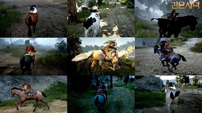 탑승물넓디 넓은 세계를 여행하기 위해선 탈 것은 필수다. '검은사막'은 이동수단의 기본인 말을 비롯, 당나귀, 마차, 배 등 다양한 탑승물을 제공한다. 당나귀나 마차 등 기본적인 탑승물은 의뢰로 얻을 수 있지만, 본격적인 탑승물은 직접 구해야 한다. 다양한 스킬과 속도감으로 많은 사랑을 받은 탑승물인 말의 경우, 직접 미니게임을 통해 포획할 수 있다. 물론 자금이 충분하다면, 다른 플레이어가 마시장에 올린 말을 직접 구매하는 것도 가능하다. 이미 말을 갖고 있는 상태라면 교배를 통해 새로운 말을 얻기도 한다.