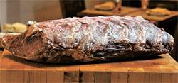고기를 공기 중에 노출한 상태로 숙성시키는 건조숙성법을 말한다. '곶감'을 말릴 때처럼 수분이 빠지는 대신 쇠고기 단백질이 자가 소화효소로 분해되면서 감칠맛 나는 아미노산이 생성된다. 이 때문에 풍미는 향상되고 육질은 부드러워진다. 단 가격이 좀 비싸다. 표면이 마르면서 곰팡이 같은 게 끼기 때문에 속에 있는 최상급의 고기를 얻으려면 50% 이상을 잘라서 버려야 한다. 고기 표면이 마르지 않은 상태로 진공포장을 하는 일반 '�에이징(습식숙성)' 고기보다 50~60% 정도 가격이 비쌀 수밖에 없다.