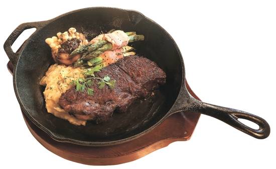 뜨겁게 달군 무쇠 팬에 기름을 붓고 고기를 굽는 방법이다. '시어링(searing·겉을 태운다는 의미)' 효과를 이용한 것인데 고기 표면은 튀긴 듯 바삭하고 속은 촉촉한 상태를 만들 수 있다.