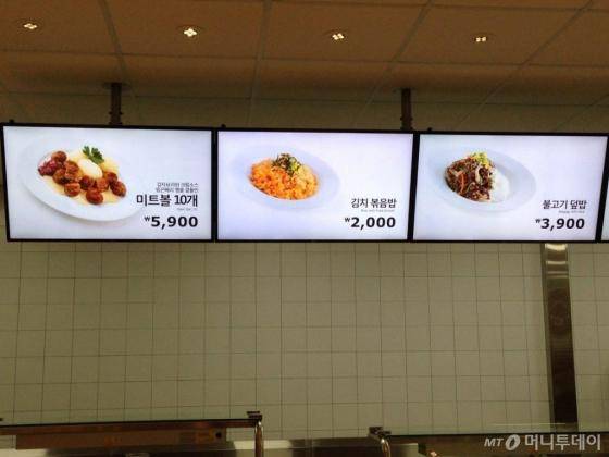 준비 중인 이케아 레스토랑의 메뉴는 저렴한 편이었다. 아침식사 메뉴는 감자와 햄치즈슬라이스, 삶은달걀과 빵이 1500원이고, 미트볼은 5900원, 불고기덮밥은 3900원, 김치볶음밥은 2000원이다.