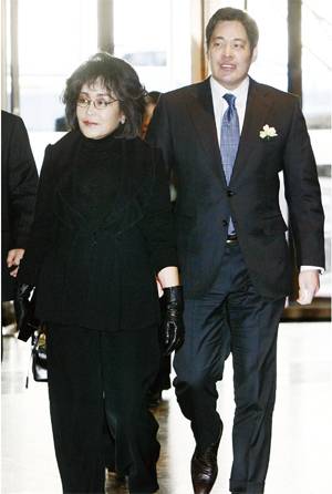 ↑이명희 신세계그룹 회장과 아들 정용진 부회장 ⓒ 뉴스뱅크 이미지