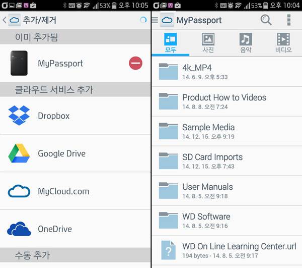 WD 마이패스포트 와이어리스의 특성을 제대로 이용하고자 한다면 역시 스마트폰이나 태블릿PC와 같은 모바일 기기를 이용해 접속하는 것이다. 일단 구글 플레이스토어나 애플 앱스토어에 접속, WD 마이 클라우드(WD My Cloud) 앱을 설치한 후, WD 마이패스포트 와이어리스의 와이파이에 접속, 앱을 실행하면 외장하드 내에 저장된 파일을 모바일 기기에서 이용할 수 있다.
