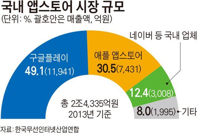 외국계 IT 기업들의 횡포는 곳곳에서 감지되고 있다. 특히 세계 모바일 운용체제(OS) 시장의 80% 이상을 차지한 구글의 독단적인 서비스 운영은 악명이 높다. 구글은 스마트폰 사용자가 자사 앱스토어인 구글플레이에서 자사와 경쟁관계에 있는 '네이버 앱스토어'를 내려 받으려 할 경우 '알 수 없는 출처'나 '모든 책임을 진다는 것에 동의' 등의 경고 문구를 노출시켜 경쟁사 앱스토어 배포를 방해하고 있다. 한명숙 새정치민주연합 의원은 올 가을 국정감사에서 "구글 등 해외 플랫폼 사업자가 시장 지배적 지위를 이용해 자사 앱 마켓 사용을 강제하고 있다"며 불공정거래 행위 의혹을 제기하기도 했다.