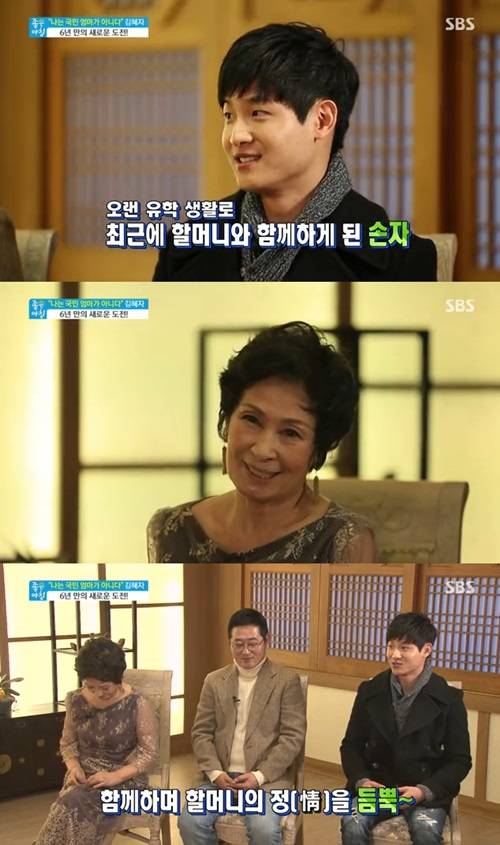 김혜자는 훈남 손자에 대해 "굉장히 순하다. 거칠지 않아 좋다"고 칭찬했다. 김혜자 아들 및 손자는 훈훈한 외모로 시선을 모았다.