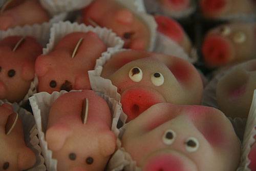 독일에서는 행운을 상징하는 귀여운 돼지모양의 빵 마지팬 피그를 주고 받고 먹는다. 음식이라기보다 귀여운 장식품같은 이 빵은 아몬드, 설탕 등을 섞어 만든다.
